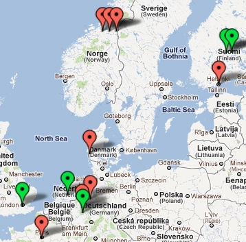 European best practice examples are listed by country in the map below. Energy saving services are marked with green dots and demand response services with red dots.